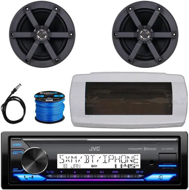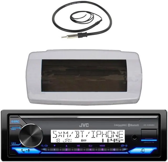 • PACKAGE BUNDLE INCLUDES: JVC KD-X38MBS Single-DIN Marine Bluetooth USB/AUX LED Illumination AM/FM Radio SiriusXM Ready Stereo Receiver W/White Boat Stereo Splash Cover, Flexible Hideaway Wired 22" Radio Antenna (Black)