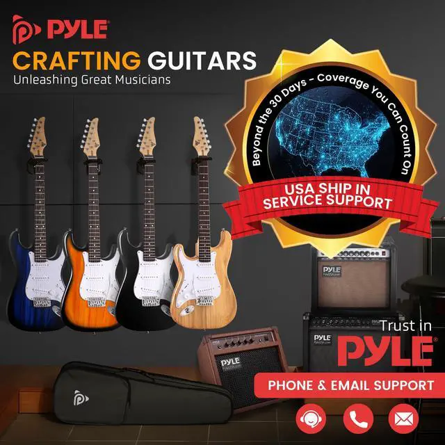 • Pyle Full Size Left Handed Electric Guitar Kit with 5W Amplifier, Gig Bag, Picks, Spare Strings, and Strap, ST-Style Beginner Guitar Bundle with 22 Frets, Paulownia Wood Body, Natural