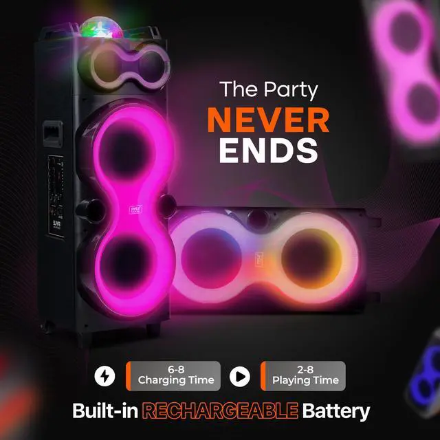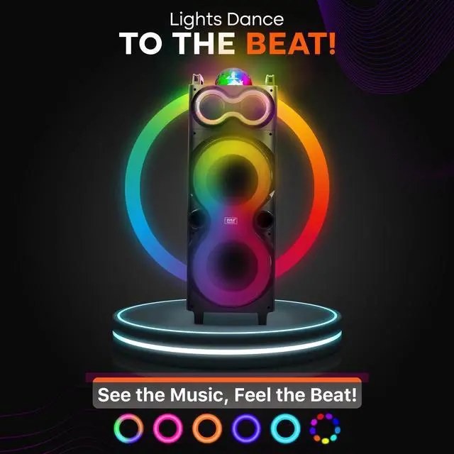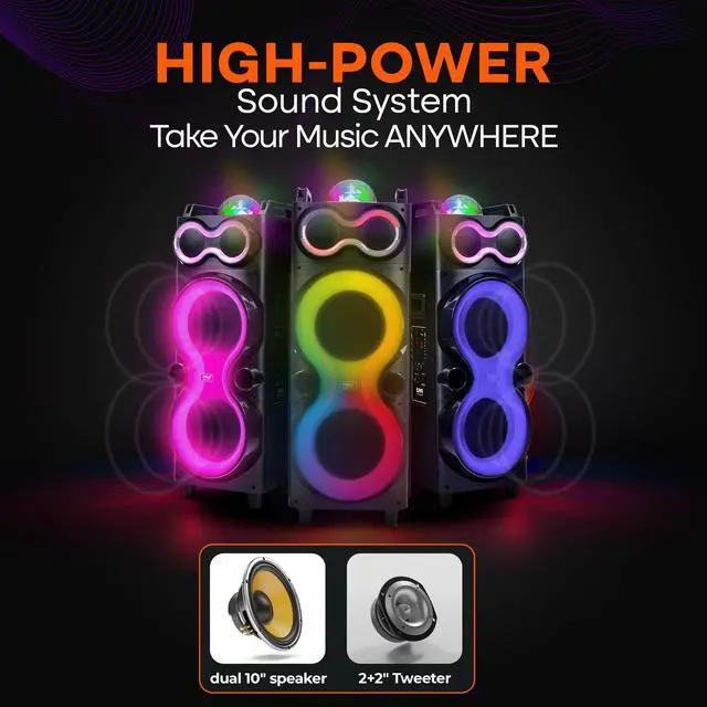 Experience Superior Sound - Enjoy your moment to the fullest with our Bluetooth party box speaker equipped with a True Wireless Stereo system. Listen to the powerful bass and clear treble that brings your music to life Party Everywhere - Our durable large Bluetooth party speaker with an included carry bag and tripod is ideal for parties, karaoke nights, and outdoor events. Take your music anywhere, indoors or outdoors, and enjoy uninterrupted fun Clear and Easy Control - Easily manage your party speakers settings with the bright LED display. Whether you're adjusting the volume or switching inputs, the clear visibility ensures hassle-free operation, even in low-light conditions Grab and Go Party Machine - The sturdy built-in handle of these big Bluetooth speakers for party makes it a breeze to carry these speakers wherever the fun takes you.