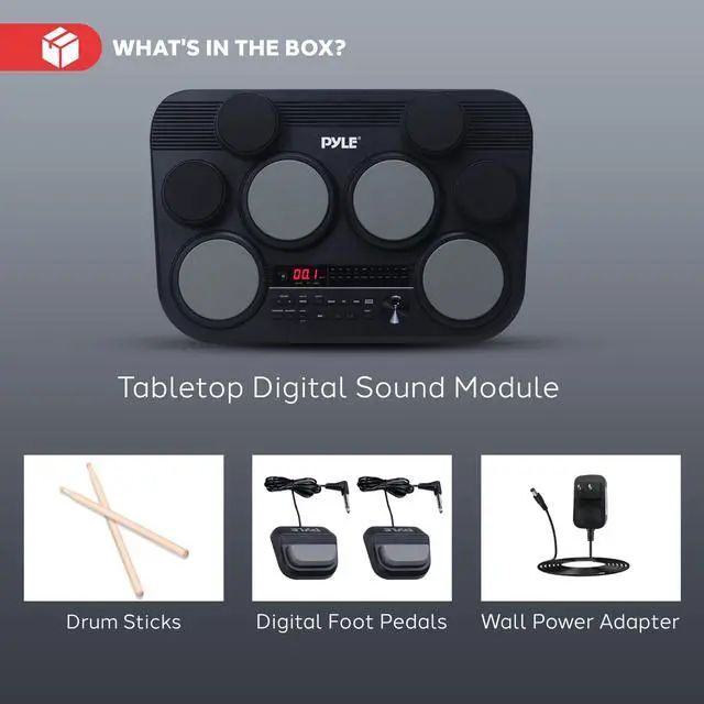 8 TOUCH-SENSITIVE DRUM PADS - Experience the ultimate drum set with 8 touch-sensitive pads, allowing for dynamic and expressive playing. Store up to 10 custom user kits and explore different cymbal and drum sounds. Ideal for any drummer's needs. COMPLETE ELECTRIC DRUM SET - The electric drum set Includes 4x5" rubber drums, 4x 3.5" rubber cymbals, (2) digital foot pedals, and (2) drumsticks. Customize your sound with built-in EQ effects, making every beat sound professional and crisp. 110 PRELOADED SONGS - Enjoy 110 preloaded songs and 600 different sound options with this electronic drum set.