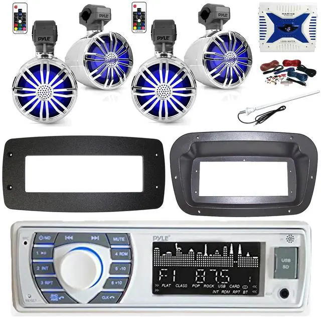 PACKAGE BUNDLE INCLUDES: Pyle PLRMR23BTW Single DIN Bluetooth Marine MP3 Stereo Receiver, Spa bezel, Adapter Plate, Radio Antenna, Wire, 4x 6.5" 600 Watt Max 2-Way Full Range Waterproof Wireless RF Streaming Speakers (White) Spa Bezel DOES NOT INCLUDE INSTALL SCREWS