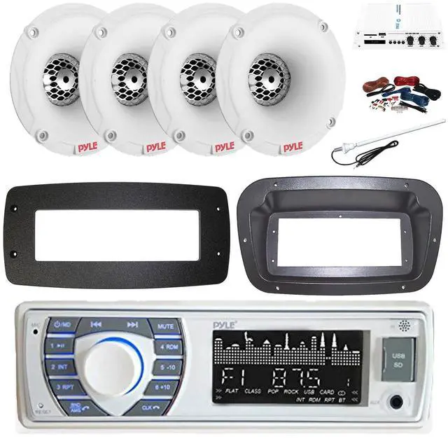 PACKAGE BUNDLE INCLUDES: Pyle PLRMR23BTW Single DIN Bluetooth Marine MP3 Stereo Receiver, Spa bezel, Adapter Plate, 22" Radio Antenna, Wire, 4x 6.5" 250 Watt Max 2-Way Waterproof Multicolor LED Audio Speakers (White) Spa Bezel DOES NOT INCLUDE INSTALL SCREWS