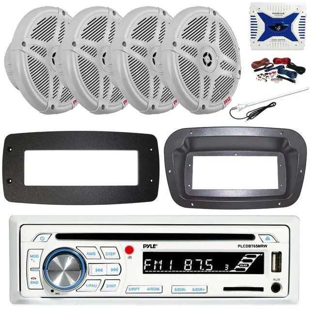 PACKAGE BUNDLE INCLUDES: Pyle PLCDBT65 Single DIN Bluetooth Marine CD Stereo Receiver, Spa bezel, Adapter Plate, 22" Radio Antenna, Wire, 4x 6.5'' 240 Watt Peak Slim Waterproof Multicolor LED Stereo Speakers (Camo) Spa Bezel DOES NOT INCLUDE INSTALL SCREWS