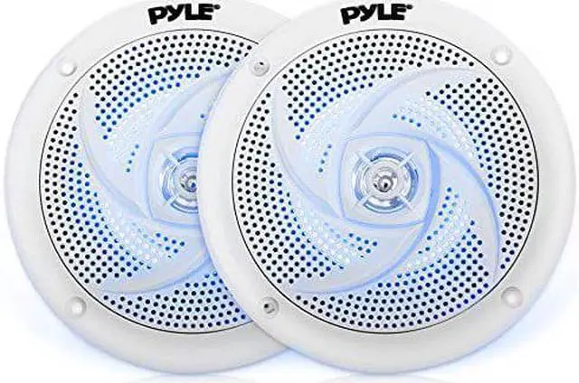 Pyle Marine Speakers - 4 Inch 2 Way Waterproof and Weather Resistant Outdoor Audio Stereo Sound System with LED Lights, 100 Watt Power and Low Profile Slim Style - 1 Pair - PLMRS43WL (White)