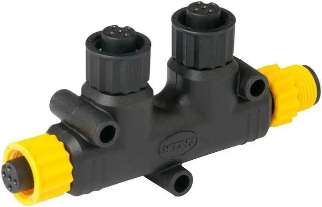 NMEA 2000 Two Way Tee ConnectorAncor's NMEA 2000 Approved Tee Connectors offer connection between NMEA 2000 drop cables and backbone cables. The yellow couplers connect to the corresponding Ancor tees and backbone cables, creating a simplified, color coded network installation. The connectors are offered in four configurations for maximum installation flexibility. The two way and four way tee connectors allow for multiple drop cables to be connected without additional backbone cable.Features:Color coded for easy installation and component identificationNMEA 2000 Approved, 100 percent universal and compatible with other manufacturers' productsWARNING: This product can expose you to chemicals including di(2-ethylhexyl)phthalate (dehp) which is known to the State of California to cause cancer, birth defects or other reproductive harm. For more information go to P65Warnings.ca.gov.