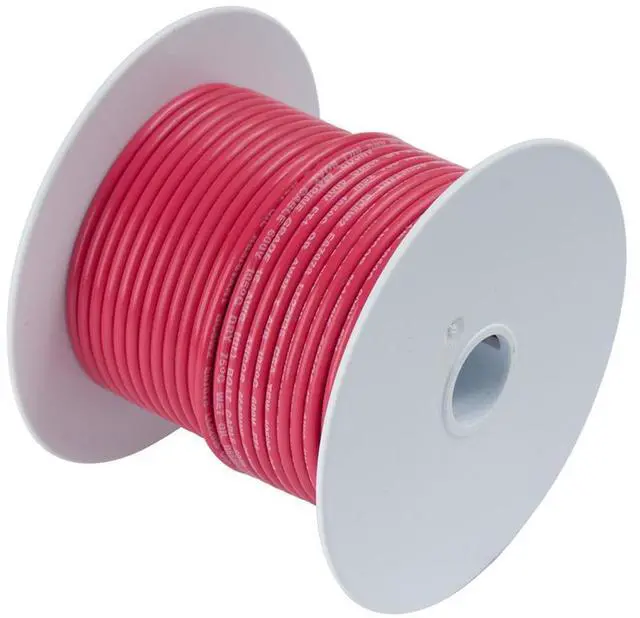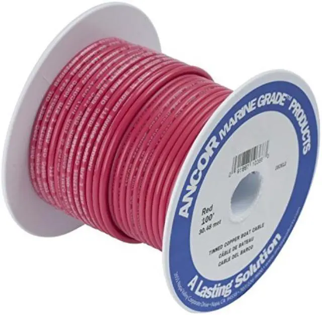 Red 1/0 AWG Tinned Copper Battery Cable - 25'Ancor Marine Grade wire products are the longest lasting and most rugged available, exceeding UL 1426, ABYC and US Coast Guard Charter boat (CFR Title 46) standards. They are constructed with premium vinyl insulation that is rated at 600V, 105°C dry and 75°C wet, stays flexible even in extreme cold (-40°F/C) and resists salt water, battery acid, oil, gasoline, heat, abrasion and ultra-violet radiation. Highest quality ultra flexible (Type 3) tinned copper stranding provides maximum protection against corrosion and electrolysis while resisting fatigue due to vibration and flexing.