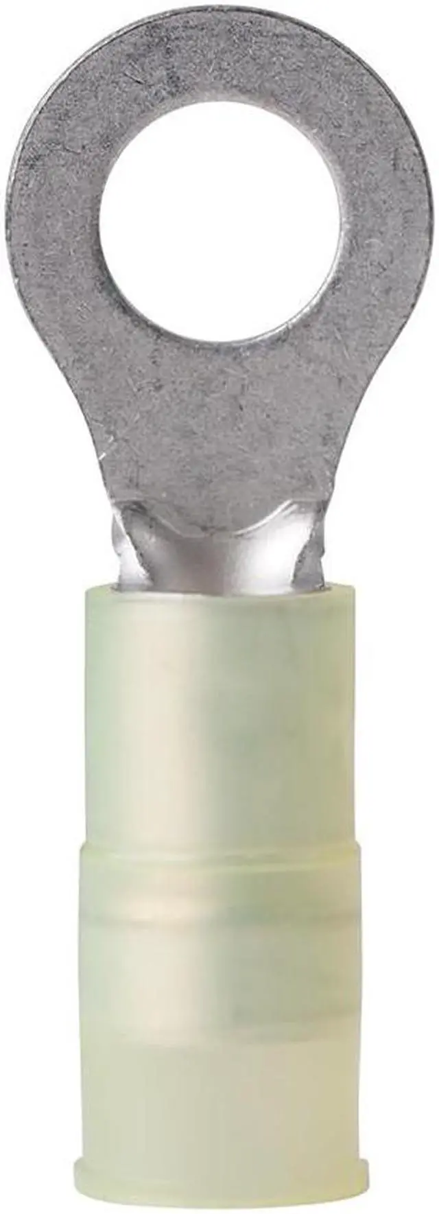 12-10 AWG - 1/4" Nylon Ring Terminal - 25-PackAncor's Marine Grade terminals differ from automotive terminals by being designed for the harsh marine environment. Nylon insulators are easy to crimp and will not split. Barrels are designed to tightly grip the wire with the least effort. Tinned copper gives the least electrical resistance but the most corrosion protection.