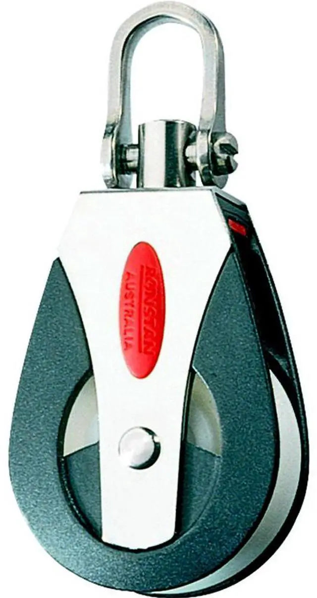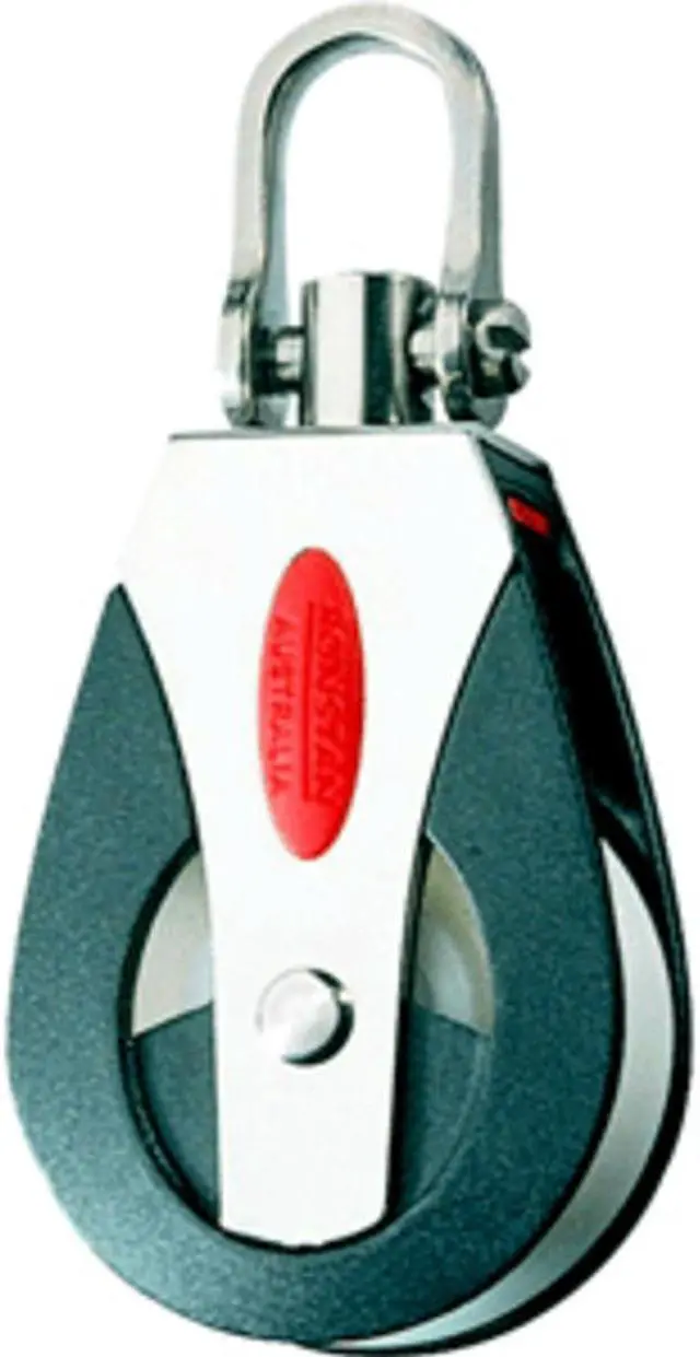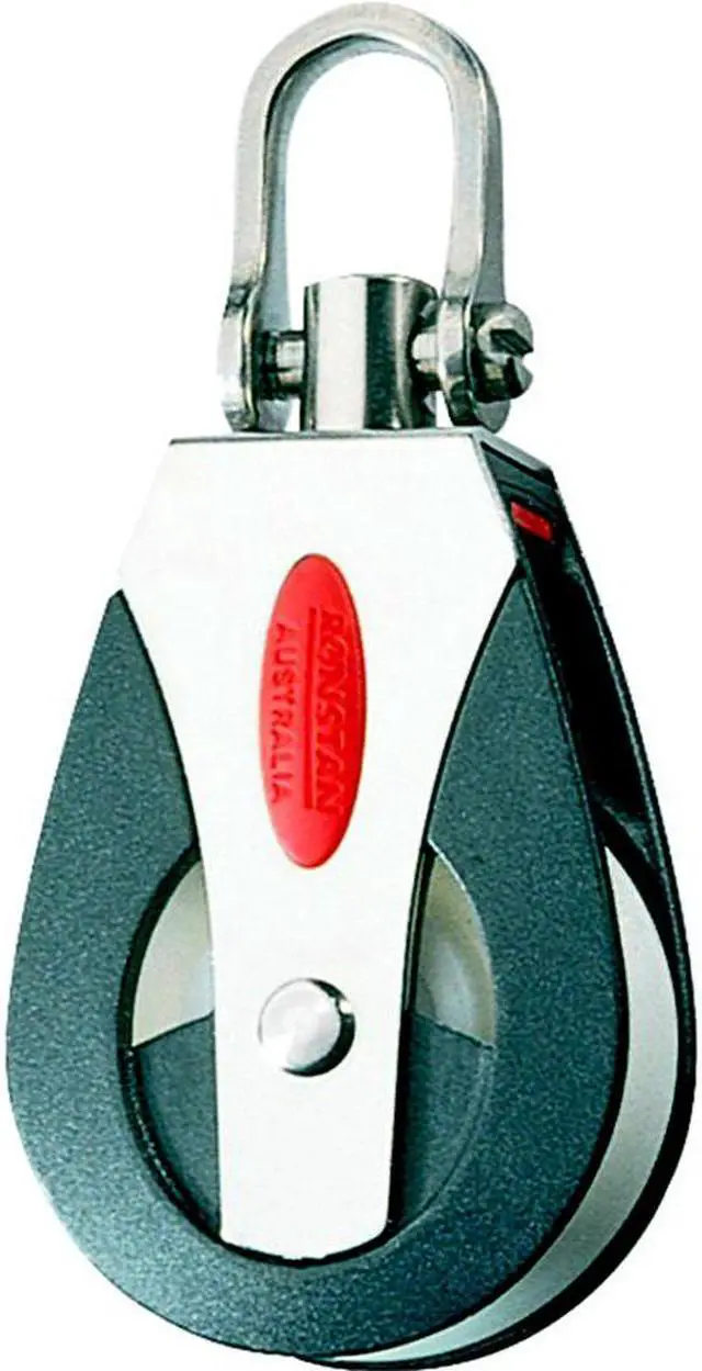 Features: Low friction Acetal or Torlon® bearing systemLightweightCheek cut-outs for easy bearing maintenanceCaptive Lock? universal headSlotted pin shackle eliminates fouled linesApplications: MainsheetHalyardVangSpinnaker control lines on off-the-beach catamarans, one design classes and sportsboats up to 8M(26')Materials: U. V. Stabilized Acetal sheavesAcetal ball bearingsImpact and U. V. resistant, fiber reinforced Nylon cheeksGrade 316 stainless steel load strap and head fittingSpecifications: Sheave