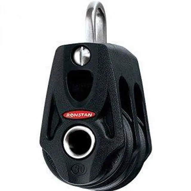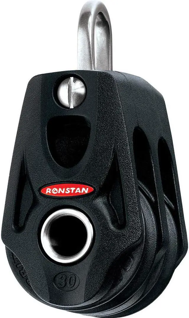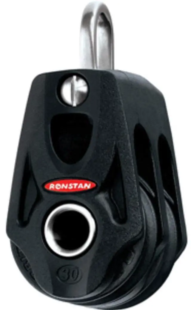 Series 30 Ball Bearing Orbit Block? - DoubleBall Bearing Orbit Blocks? boast the highest strength-to-weight ratio available. This is achieved through all-composite reinforced polymer materials and multiple attachment options. Their precision design provides the optimum number of ball bearings for minimum friction while weight reduction is achieved through the use of fiber-reinforced composites in the block head, cleat arms and beckets.Features:LightweightHighest working load in its classSecure, versatile and secure attachementLow profile and compactApplications:Mainsheet systems and spinnaker sheets on dinghies to 5M(16')Halyard, vang and backstay applications on boats to 5M(16')Control line applications on larger yachtsMaterials:Sheave: High compression strength carbon black AcetalBall Bearings: High compression strength AcetalFrame/Cheeks: Toughened, glass fiber reinforced NylonLink: UV stabilized, multi-strand impregnated SK75 Dyneema®Specifications:Sheave Ø: 30mm(1-3/16")Max. Rope Ø: 8mm(5/16")M.W.L.: 450kg(990lbs)B. L.: 900kg(1,980lbs)Weight: 50g(1.7oz)