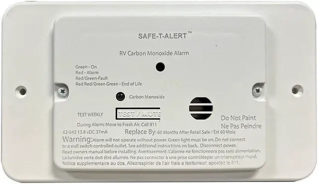62 Series RV Carbon Monoxide - White - Flush Mount - 12V with Trim Ring