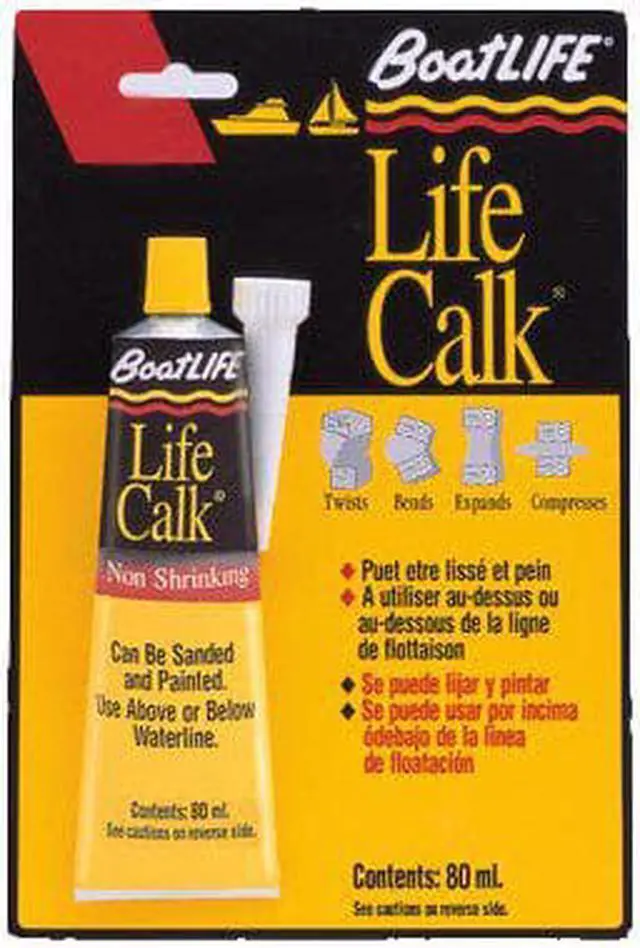 Life-Calk Cartridge - Teak Brown A long lasting, permanently flexible marine polysulfide sealant which can be sanded, painted***, and used above and below the waterline. Tack-free in 1 to 3 days, excellent resistance to teak oils, gasoline, and diesel fuel. Ideal for teak decks, to bed deck and hull hardware, seal thru-hull fittings, and underwater seams. Will bond to fiberglass, wood, metal, glass, and itself. Cures to a firm flexible rubber seal with excellent waterproofing and adhesion qualities. Can be applied underwater for emergency repairs.