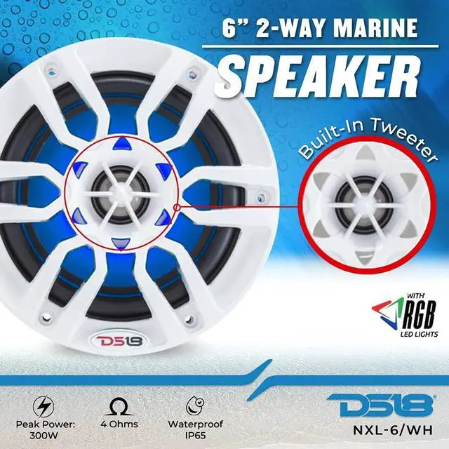 DS18 6.5" 2-Way Marine Speaker System with RGB LED Light - Hydro NXL6