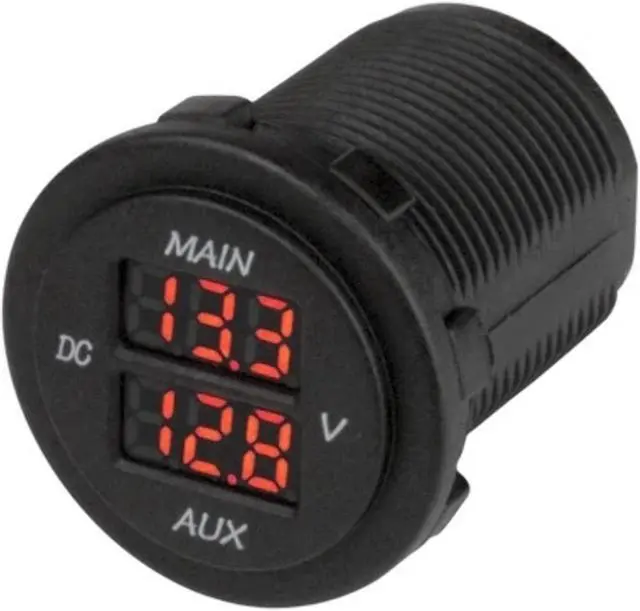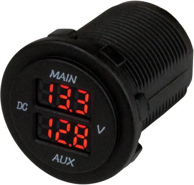 This digital dual-round volt meter displays voltage for the main and auxiliary batteries simultaneously. With the same compact size as a standard 12V receptacle socket, this volt meter supports many installation options.KEY_TAB