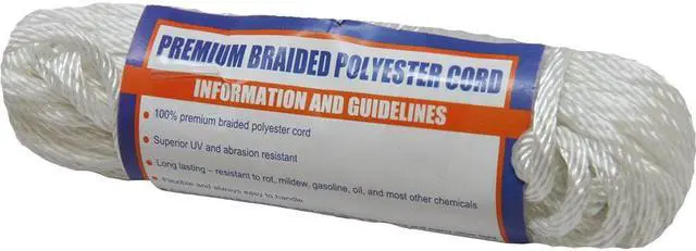 Solid Braid Polyester Cord Hank - 5/32" x 50' - White