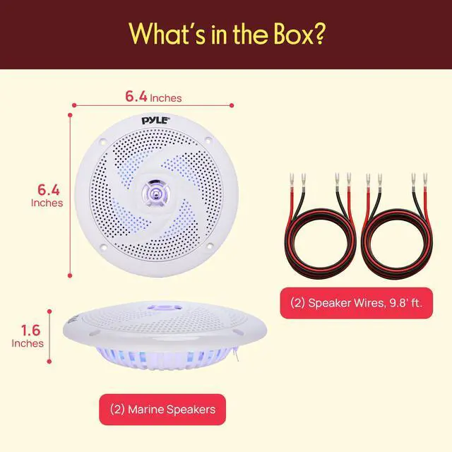 Waterproof: comes with 2 Marine speakers that are waterproof with a standard size of 5. 25 inches Each. Can be used for several vehicles because it has a weather resistant feature to withstand heavy water splashes and other outdoor conditions