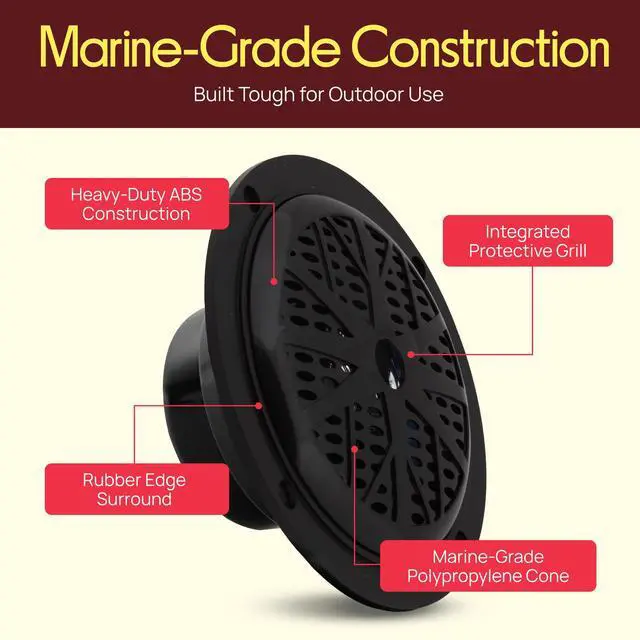 Full range audio and complete stereo speaker sound system.The built-in molded grill and classic white look also gives extra style to the vehicle. They’re designed with rust-proof mesh covers for quality protection. The polypropylene cone accurately reproduces sound, and the molded ABS plastic basket keeps your sound distortion-free.