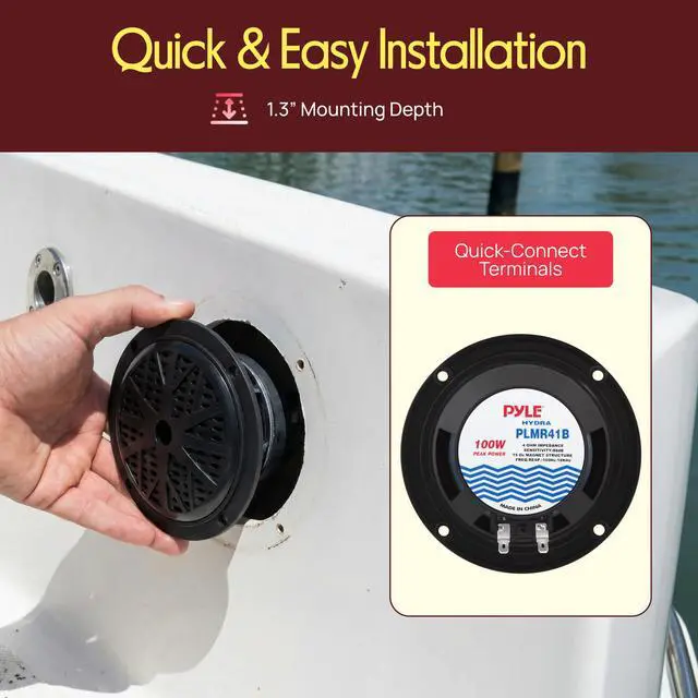 These marine speakers are easy to install with a standard size of 4 inches, complete wirings and mounting hardware that comes with the package.