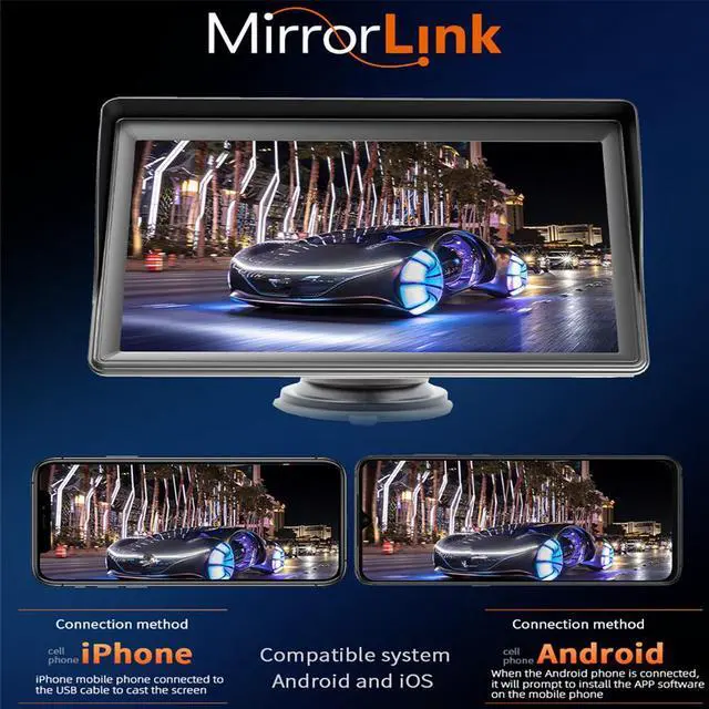Portable 7" HD Touch Screen Multimedia Player Compatible with Wireless CarPlay Android Auto Mirror Link