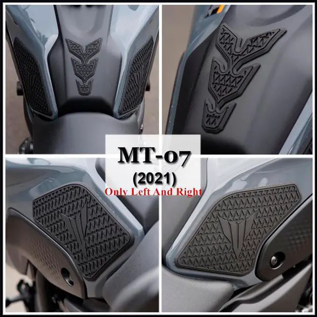 Robust rubber material for maximum grip and control High density rubber for increased strength Strong and excellent adhesive quality. The side tank pads offer the best protection against scratches or abrasion marks from the knee on the tank Increased and better grip on the bike Perfectly complement the look of the new for MT07 from 2021 Sporty look, better driving experience and protection from scratches