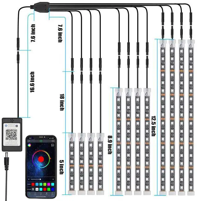 APP Bluetooth Control: The bluetooth RGB motorcycle underglow LED light kits through the installation of the APP, 16 million different colors are provided, and each light bar can emit 150° super wide-angle light. You can DIY your own unique color pattern to create a comfortable and romantic atmosphere.