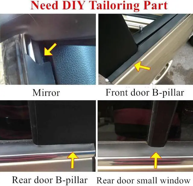 Rear mirror & B-pillar & Rear door small window need DIY tailoringIt is suggested to compare orignal car position firstthen mark lineand then cut.