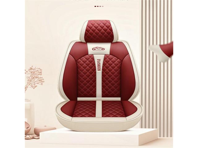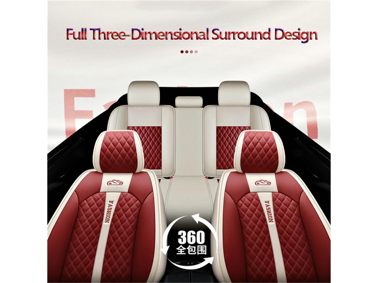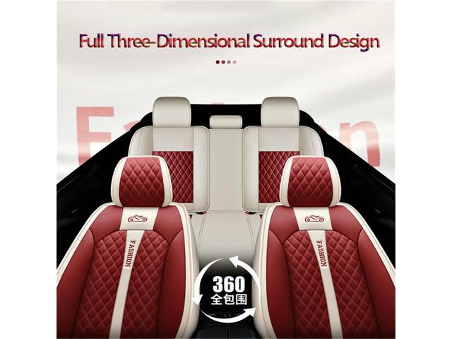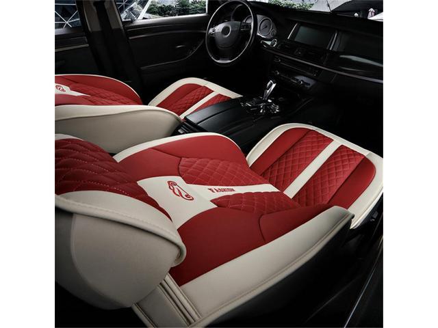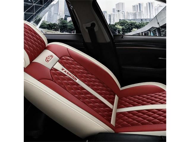 Acaigel Red & Beige Car Seat Cover PU Leather Front Rear Cushion Pad Protector