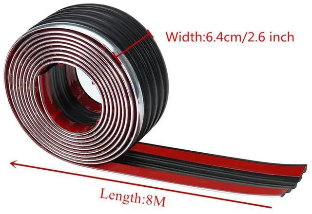 Size: 2.5 in x 315in ( 6.4 cm x 800cm)Color: Chrome Silver & BlackIt the area has been waxed, it has to be removedthoroughly or the adhesive tape will not work or could fall off easily. (It is recommended that this task should be done in room temperature)