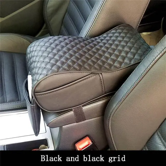 Black Car Universal Armrest Cushion Console Box Cover Pad PU Leather Pouch Bag