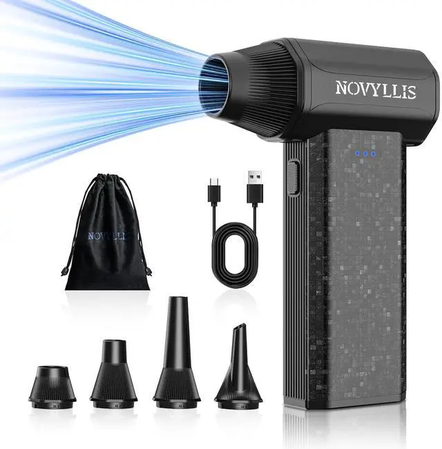 Handheld & Portable: Weighing only 0.45 lb and featuring a compact design, this Novyllis mini air blower is easy to carry and convenient hand held use. Effortlessly tackle cleaning tasks whether at home, office, camping outdoors, or traveling