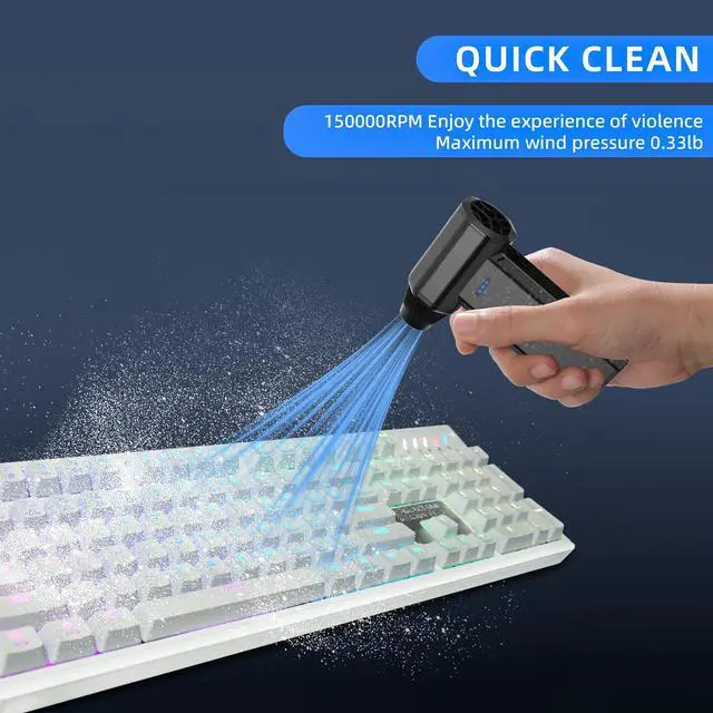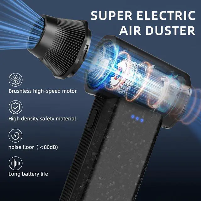 Powerful Turbo Fan: Novyllis X113 electric air duster driven by a high-performance brushless motor with a speed of up to 150,000 RPM, effectively removing dust and debris. It features 3-gears adjustable speed settings to easily adapt to various cleaning tasks