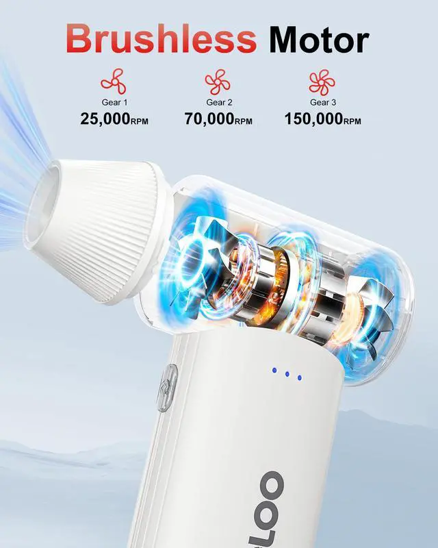 • Powerful Turbo Performance: The F3 pc cleaner boasts 150,000 RPM high-pressure wind power, which can strongly blow away dust and debris, delivering outstanding cleaning results and easily dealing with stubborn dirt.