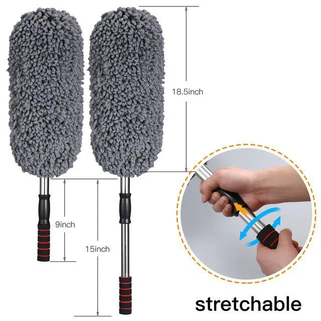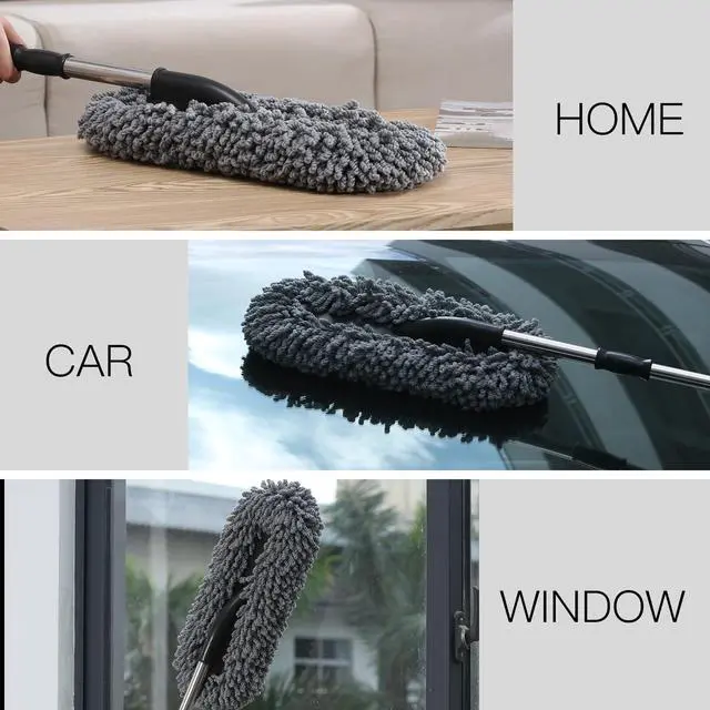 3 Pack Large Microfiber Car Duster Exterior Scratch Free with Extendable, Car Duster Interior Multipurpose dust Cleaning