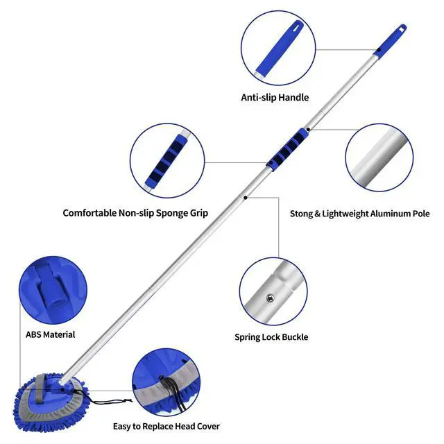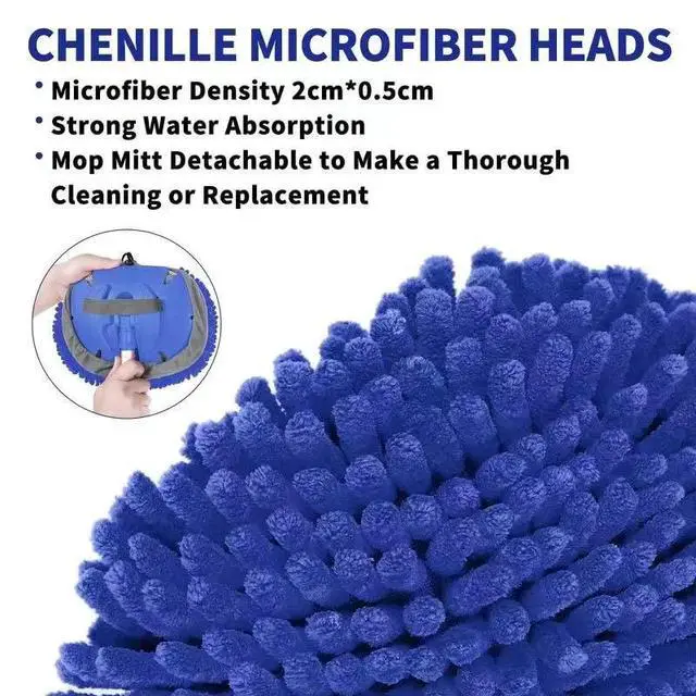 The aluminum alloy rod and brush head can be rotated 180 degrees at will, realizing no dead-end cleaning. The car wash mop head can be easily removed, and it can be used as a car wash mitt to make car cleaning easier.