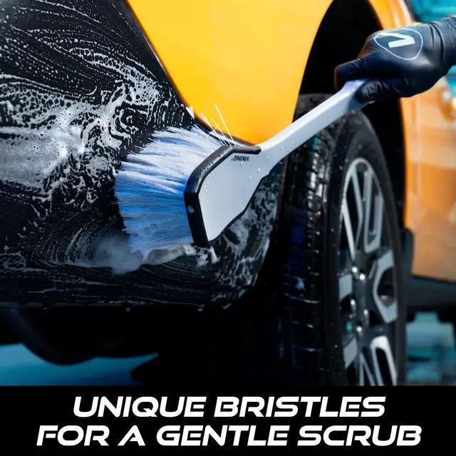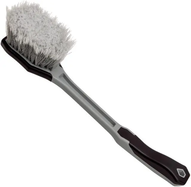 Designed for comfort and control, the Long Handle Grill & Fender Brush features an extended ergonomic handle with a non-slip grip. Its densely packed, triple-flagged bristles deliver gentle yet effective scrubbing power—perfect for grilles, fender flares, and those hard-to-reach areas. Get pro-level cleaning results right in your own driveway.