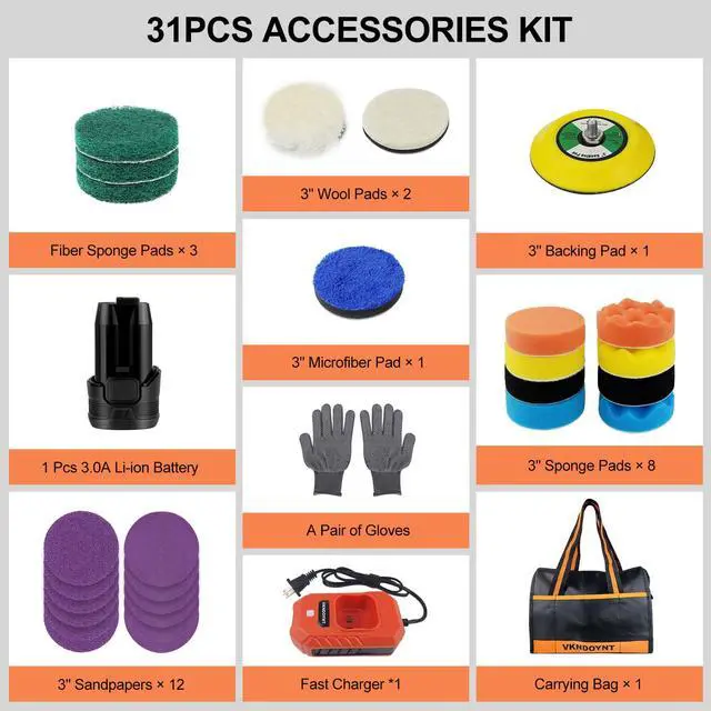 VKNDOYNT Car Polisher Kit with 5 Different Pads for a Variety of Jobs