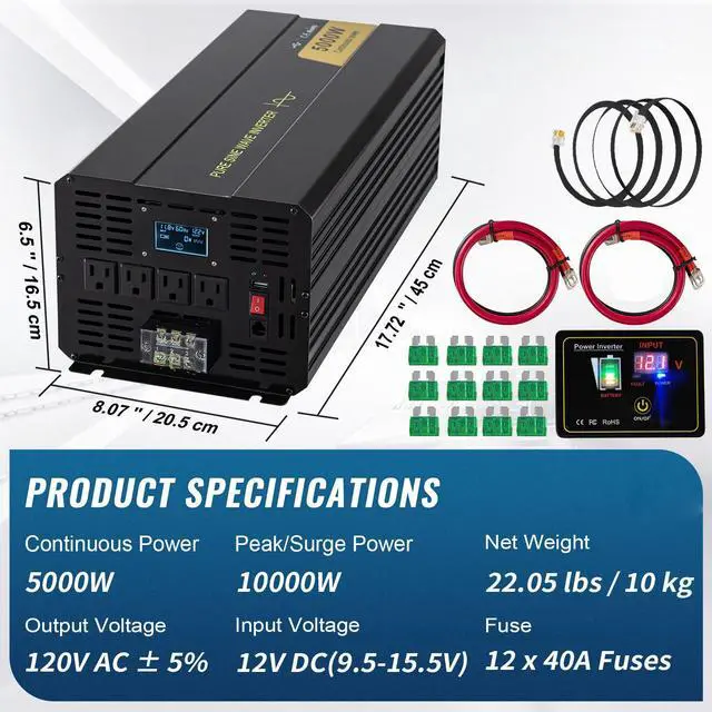 Over-load protection: Alarm at 125% overload, stop working after 20s