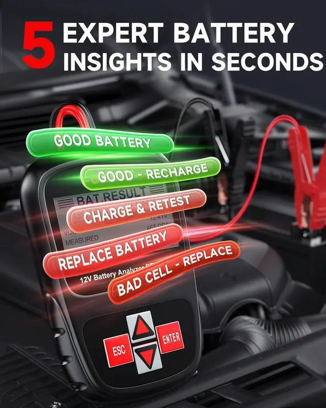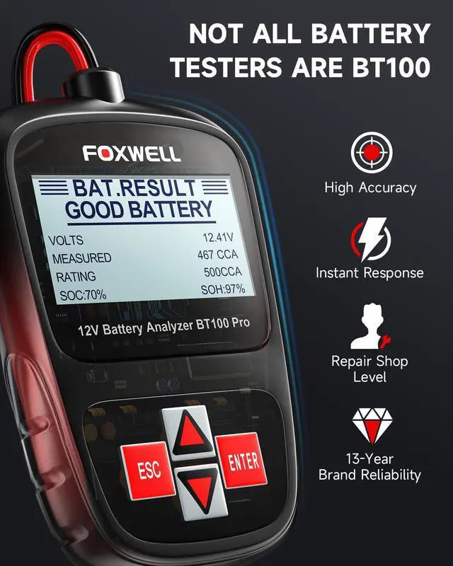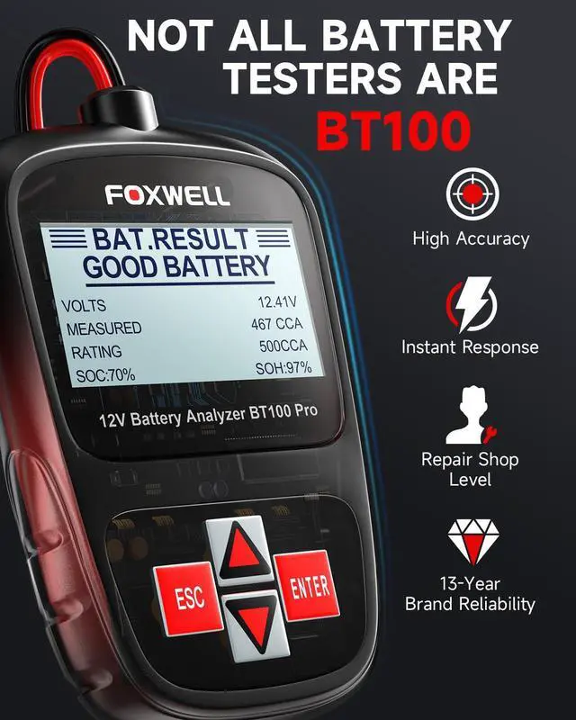 | Style | 12V/100-1100CCA Lead-acid Cell LCD Backlit Screen & Convenient Portability 99.9% Accuracy Data Review |