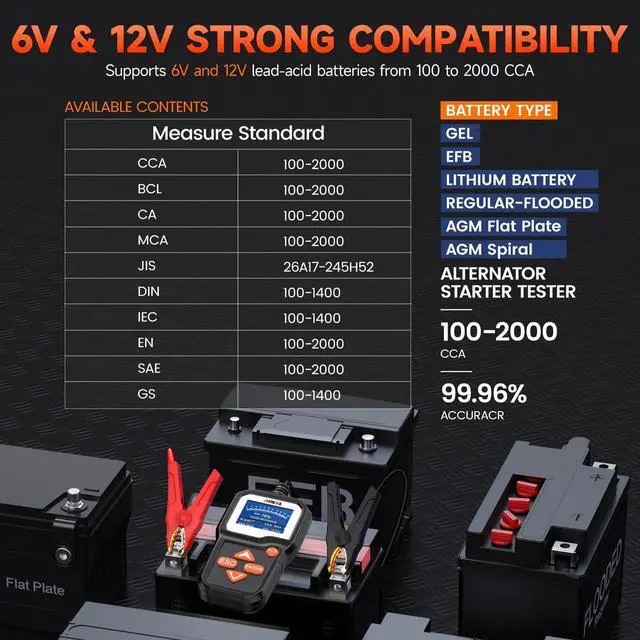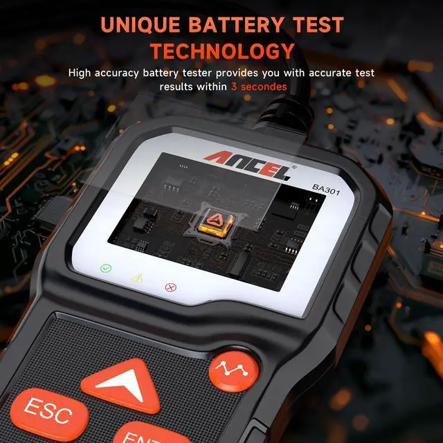 | Style | BA301 Battery Tester offers one-touch, precision testing for 6V/12V automotive batteriesfeaturing spark-proof clamps and a color display for use on motorcycles, cars, boats, trucks, SUVs, ATVs, and more.Not compatible with 8V batteries |