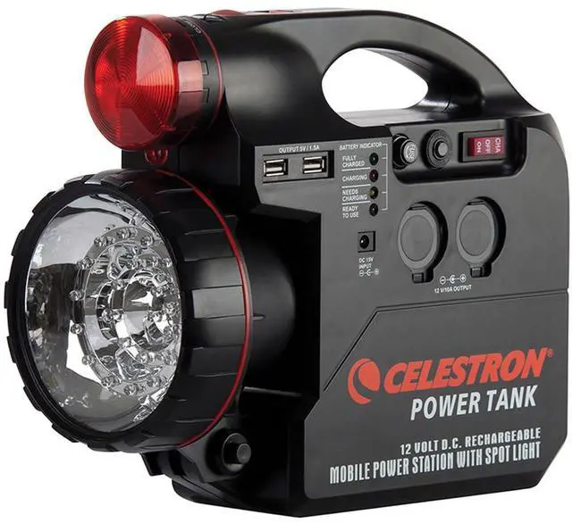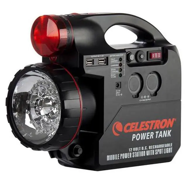 Now you can take your telescope anywhere with this portable rechargeable power supply. Whether you have a computerized telescope or operate your telescope using motors, Celestron specially designed this product with the amateur astronomer in mind -- this model is packed with useful features. Not only useful for setting up and powering your scope, this model can also be useful as an emergency roadside accessory as it includes an emergency light, and booster terminals in place to start weak car batteries.