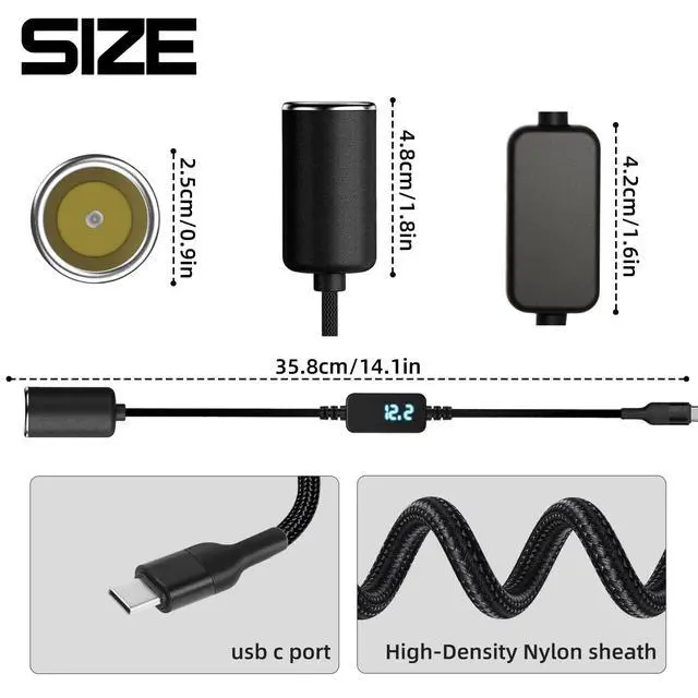Versatile Compatibility: USB C to 12V car cigarette lighter socket adapter is designed to solve connectivity needs for devices lacking a car socket, it supports dash cams, Car Interior Mood Lighting, electronic speed radar detectors, and other in-vehicle devices with a power consumption 18W. such as car air pumps, electric jacks, car vacuum, power inverter, tire inflator, compressor, Pump, car refrigerator, heated seat, car cleaners and other high-power devices.