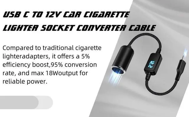 Efficiency Upgrade: this adapter features an efficiency upgrade of over 5% compared to traditional USB C cigarette lighter adapters, achieving over 95% conversion efficiency, it supports high input currents for a maximum 12V output of 1.5A (18W), ensuring reliable and efficient device power supply.The output port is a 12V car cigarette lighter socket, which can only output 12V DC voltage, in order to ensure efficient power supply of the output device, it does not support devices higher than 12V.Maximum output power 18W