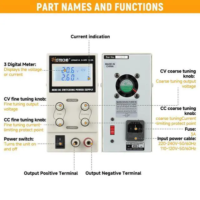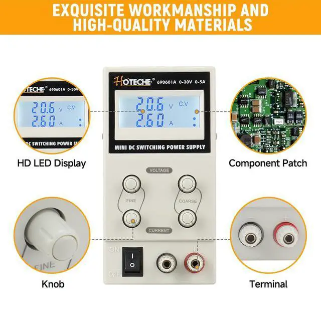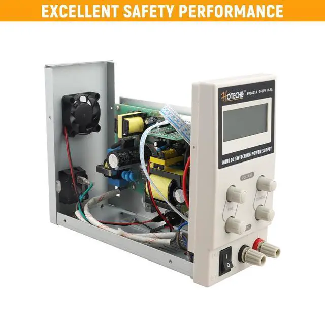 The HOTECHE power supply is equipped with robust Short-Circuit and Overload Protection. In the event of a short, the unit will immediately enter Constant Current (CC) mode or trigger its protection circuit to limit the output.