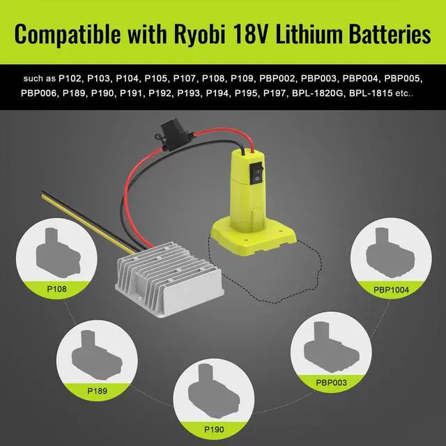 Compatibility: Perfectly compatible with Ryobi 18V lithium batteries, works with P102, P103, P104, P105, P107, P108, P109, PBP002, PBP003, PBP004, PBP005, PBP006, P189, P190, P191, P192, P193, P194, P195, P197, BPL-1820G, BPL-1815, BPL-18152 etc. Our battery adapter connector fits snugly, ensuring easy installation and secure battery locking
