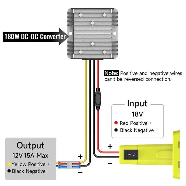 18V to 12V Step Down Converter Compatible with Ryobi 18V Battery Adapter, Voltage Converter DC 12V 15A 180W Buck Converter Regulator, Power Wheel Adapter with Switch, 30A Fuse & Wire Terminal