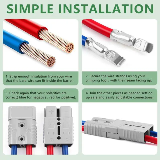 No Male or Female Design: The battery connectors 12v quick connect with stainless steel shrapnel can prevent terminals from moving left and right to ensure good contact, beneficial for reducing inventory