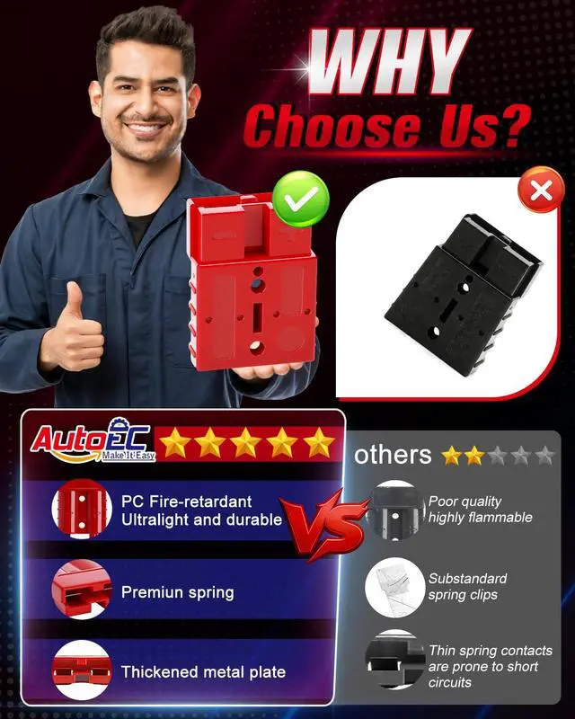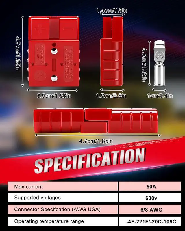 | 50A-600V 6/8 AWG | 120A-600V 2/4/6 AWG | 50A-600V 8 AWG | Fits 1/2" Impact Wrenches | Fit for Tacoma 2024–2026 | Fit for RAM2500/3500 2019-2026 | Fit for 2–3 Ton Floor Jacks |
