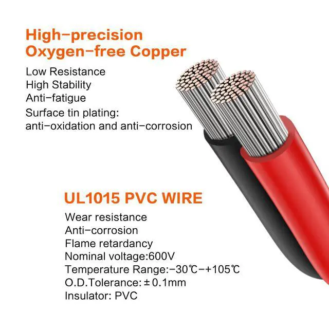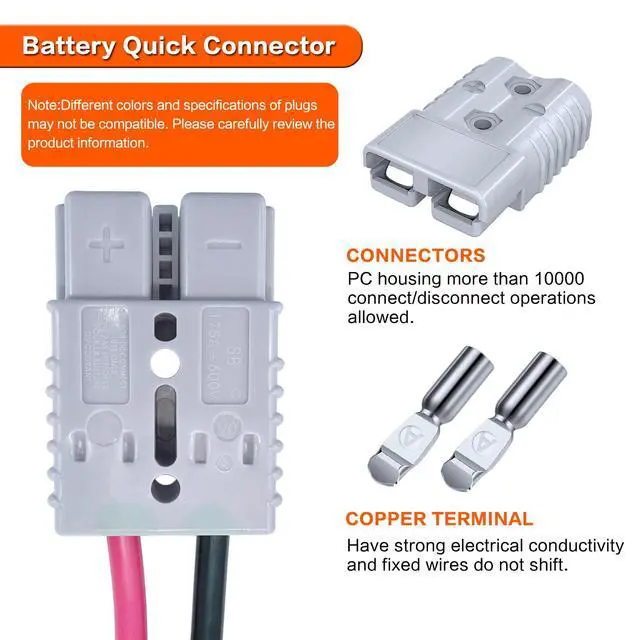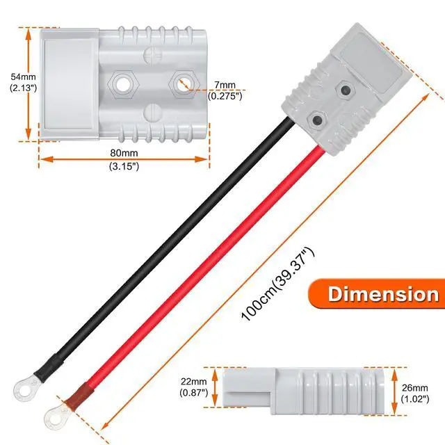 1M Cable:This quick connector kit with 39.37 inch cable,made of 6 AWG tinned copper wire with high-quality protective sheath,heat resistant to 105 °C,providing stable current for your equipment and minimizing power loss