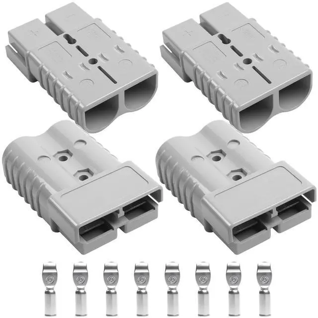 (4PCS) 350A 600V Battery Quick Connect Plug Kit for 2/0 AWG Cable, Heavy-Duty Quick Disconnect Connectors for Winch, Trailer, RV, Truck, and Industrial Power Systems (Gray)