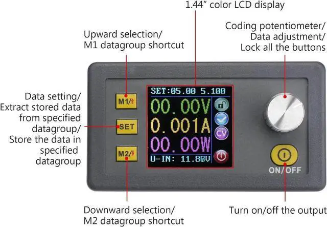 DROK DC converter is the combination of analog integration and digital control. Its adjustable output voltage range is 0- 50.00V, step by 0.01V; its adjustable output current range is 0- 5.000A, step by 0.001A.