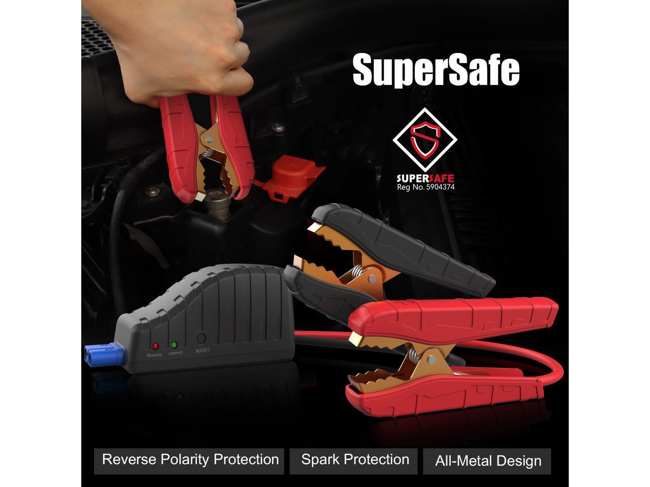 - SUPER SECURITY & RUGGEDNESS: The GP4000 Smart Jumper Cable are constructed with all-metal clamps to prevent breakage caused by long-term use. And it has 8 protections, including overcurrent protection, overload protection, overvoltage protection and overcharge protection.